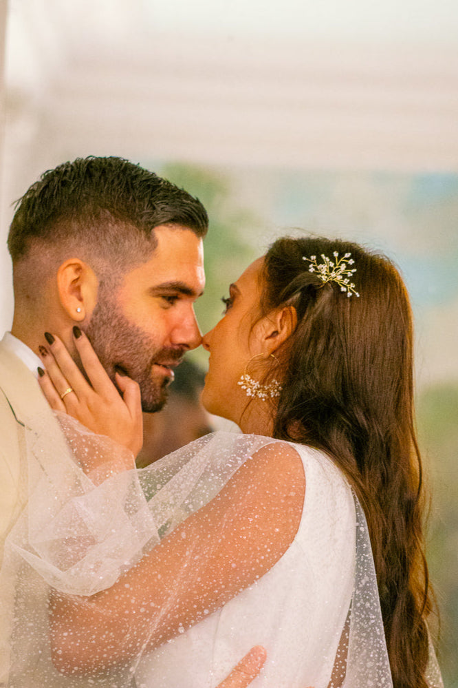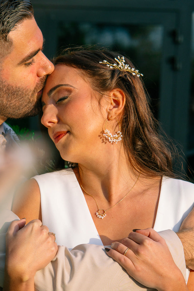 Pour votre jour de mariage, laissez-vous séduire par la délicatesse de ces créoles ornées de perles blanches nacrées et inspirées du gypsophile. Chaque créole est minutieusement travaillée à la main pour recréer l'effet poétique de petites fleurs blanches, symbolisant pureté et amour éternel.
